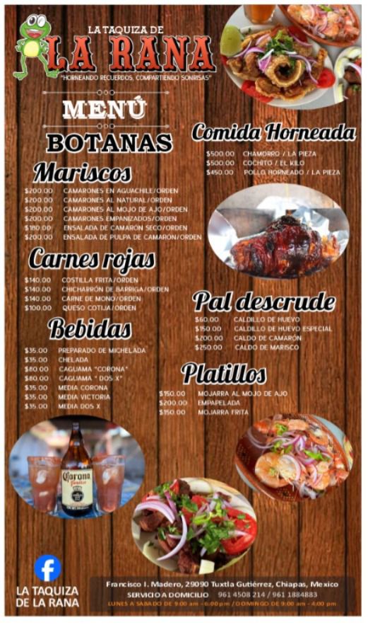 Todo comenzó con el señor René Víctor, conocido como La Rana, quien inició vendiendo barbacoa de borrego cocida en horno de barro. Al principio, sólo ofrecía su comida los fines de semana y realizaba entregas a domicilio exclusivamente para conocidos. Sin embargo, gracias a las recomendaciones de sus clientes, la demanda creció rápidamente. En sus inicios, transportaba la comida desde su pueblo hasta la ciudad, pero al notar el éxito de sus platillos, decidió establecer un pequeño puesto de taquería. Allí comenzó a vender barbacoa de borrego e incorporó carne de cerdo, lo que llevó a la creación de su platillo estrella: el chamorro, hoy en día el más solicitado por los clientes. Para mejorar la preparación de sus platillos, construyó un horno de barro en su casa, donde cada viernes por la noche iniciaba el proceso de cocción. Con el tiempo perfeccionó sus técnicas y aprendió a manejar los tiempos de cocción de cada platillo. La demanda siguió en aumento, y junto con su esposa, decidió extender su servicio, pasando de vender solo los fines de semana a ofrecer sus productos los 365 días del año. Así nació La Taquiza de La Rana, un restaurante que comenzó en el patio de su casa y que hoy cuenta con tres hornos de barro, una mayor variedad de platillos, incluyendo botanas de carnes rojas y mariscos, y hasta una taquería móvil para eventos especiales. Actualmente, La Taquiza de La Rana es reconocida no solo por su sabor único y el inconfundible chamorro, sino también por su hermosa vista panorámica de la ciudad, el excelente trato de sus meseros y la comodidad de sus instalaciones. Además, muchos clientes llegan para disfrutar de sus famosas micheladas al estilo La Rana, que se han convertido en un sello distintivo del lugar.